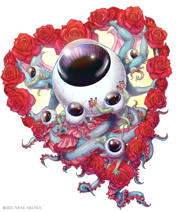 Some Valentines Day art I was inspired to draw. ❤️👁️🌹🐙