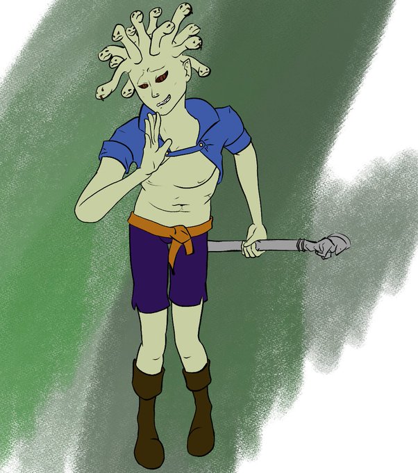 Our DnD darling is complete. Our shy medusa entertainer warlock boi is ready for some storytelling.