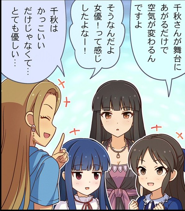 *추가로 데레스테 1컷에서 페로와 자고 있는 유키미에게 치아키가 익숙하게 담요를 덮어주는 것, 와이드 극장 114화에서는 '치아키는 멋지기만 한 게 아니라 엄청 상냥해', '항상 뭐든지 열심히 노력하는 거 대단해'라며 유키미가 치아키를 칭찬하는 것을 보며 둘의 평소 관계를 짐작해볼 수 있습니다.
