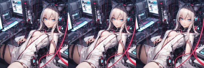 PCが本来の用途から解放されたので、Depth推定で遊んでみるテスト いわゆる立体視です。 左と真ん中で平行法 真ん中と右で交差法 画像を選べば立体っぽくなるかな? 猫耳が苦手なのはDepth推定モデルがリアル画像で学習しているからですかね・・・ #AIart #AIイラスト #Nabylon