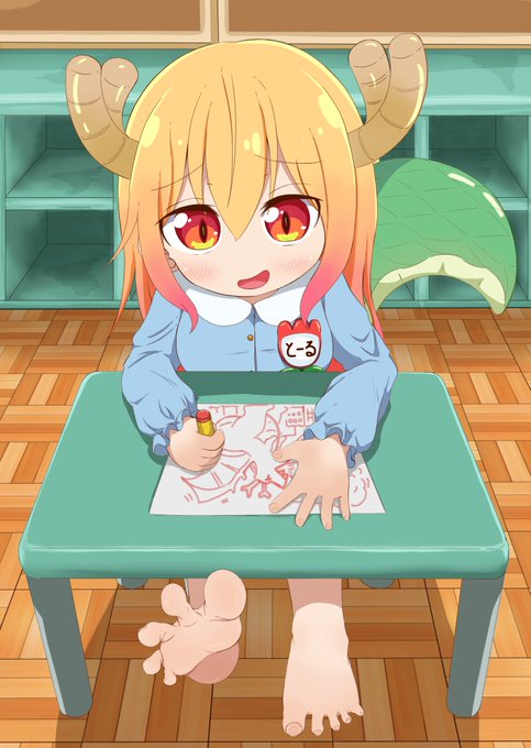 #イラスト #maidragon #うちのこ 今日8月14日は、「裸足の日」らしいです👣 なので、ロリトール様とゆりちゃんの裸足作品を載せておきます🦶