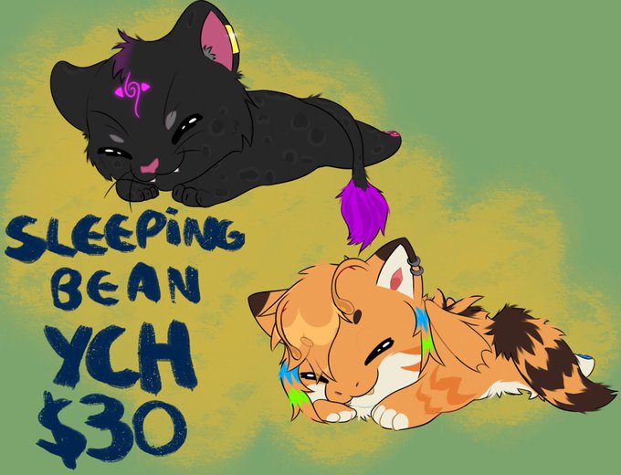 @sayonarte Heya!! I’m Neko! A brazilian furry artist!! I have this sleeping bean ych open!! I have to sell the remaining 7 slots of it before the end of this month! They are 30$ each! I like to draw cute stuff and monsters!