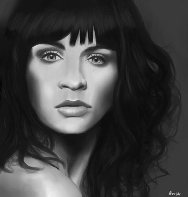 @RipperStreet @charlenemckenn Here it is Charlene's portrait. My second try of painting curly hair. :)