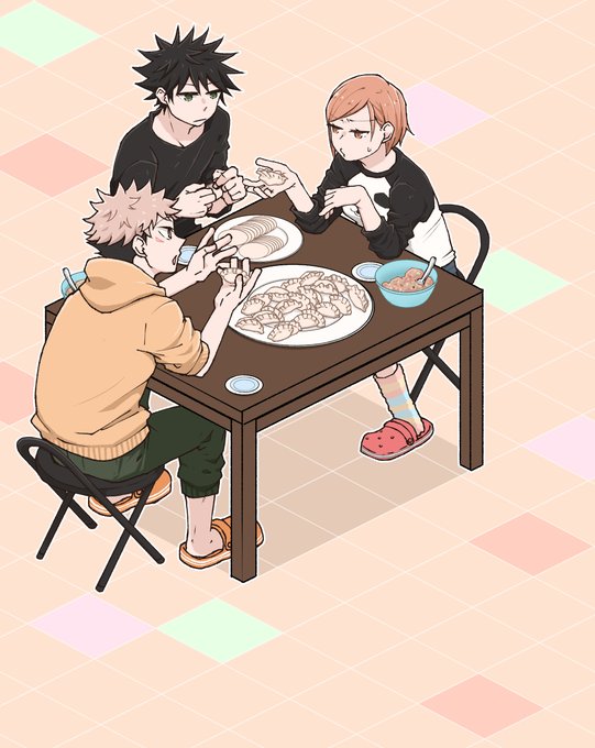 お題箱リクエスト『1年生3人で料理しているイラスト』 餃子食べたかったので餃子作ってもらいました^^ リクエストありがとうございました~!
