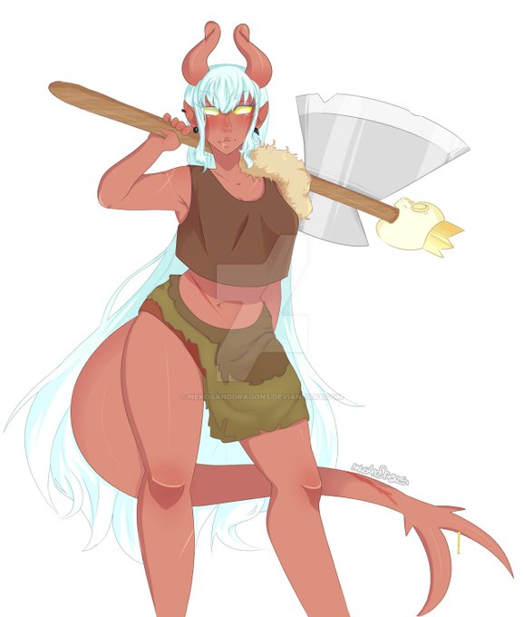 This is Kara Hargrave, my barbarian tiefling whom I adore. She's an alcoholic and will fuck ur shit up if even think of starting smth. She also really sad n needs a hug. I don't have any drawings of her in her actually DnD cloths atm lol.