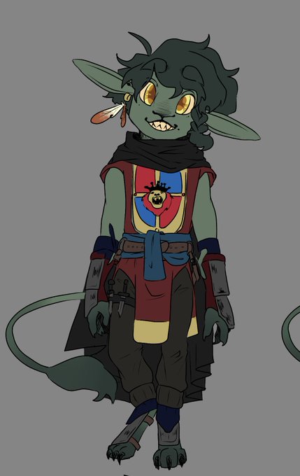 SPLEENS~! my lill gobo boy!!! god a chaotic child who is bby and tries his best to be a rouge but he is bad at it. Solves problems on accident and has caused his boss to yell at the party bc we are "too good at our jobs." aid boss will forever be haunted by the phrase "hey sir-"