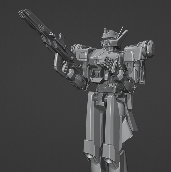 mecha update,,, crying 😭😭 made an entire inner frame AFTER doing the outside LOL you can see clearly what's finished and what isnt 🥲🥲 so close to finishing the modelling,,, alternate colour for funsies too >:D still looks nice!