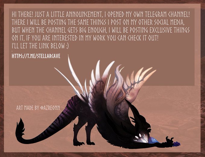 As the image says, I opened a new Telegram channel, I plan to post exclusive raffles and designs in the future when it gets bigger,and of course you can contact me there for commissions and everything else too! I'll let the link below ^^