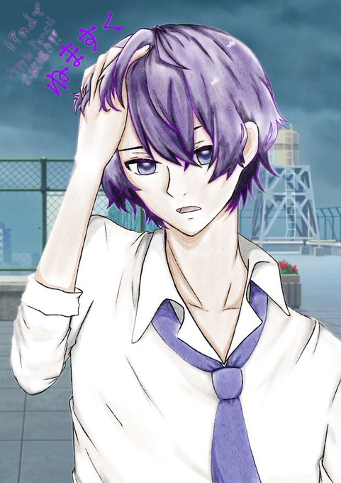 イチナナお絵描き配信2回目、皆さん来てくださりありがとうございました😷🎨💜 完成しましたので全体図を載せておきます😌 雨上がりの学校の屋上に現れたイケメンくん?w 久しぶりに推し様以外を描いたな~💭 若い子久しぶり…() 推し様の絵は…色あって配信出来ないけど、また次描きたい絵考えとく😎