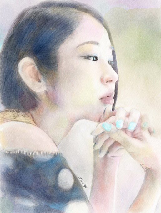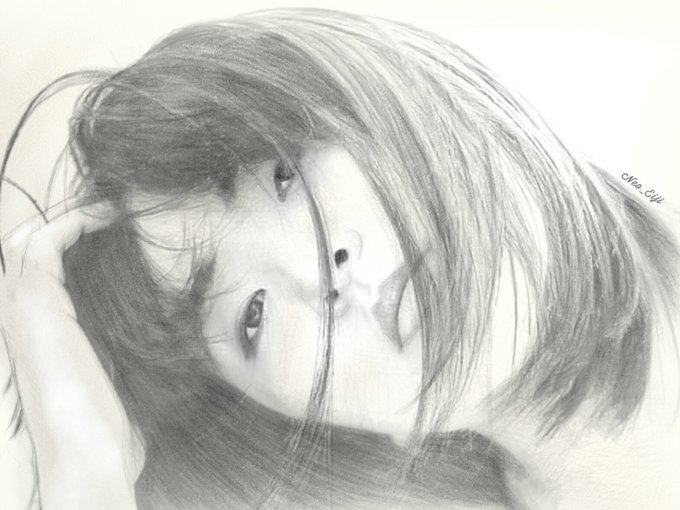 かきやりしその黒髪のすぢごとに うち臥すほどは面影ぞたつ 藤原定家 「黒髪をかきやる髪の一筋がはっきりと見える~あの人の面影が眼の前にくっきりと浮かび上がる…」と詠っている✩︎⡱くるみんさん💖 遅くなり申し訳ないです🙏 #portrait #model #水彩画 #鉛筆画 #ポートレート #被写体