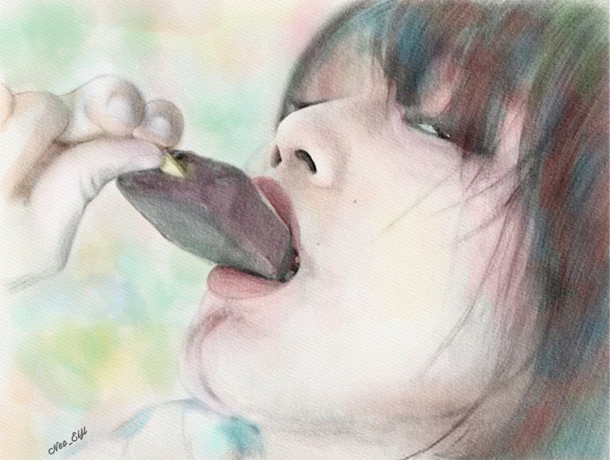 アイスを頬張るみっちゃん💝 天使のような爽やかな笑顔と妖艶な姿の両面を見せてくれる ✩︎⡱みっちゃん.カメラマンのTamotsu (Twitter:@tamotsu0822)さん、快く描く機会いただきありがとうございます🙇 #portrait #model #似顔絵 #水彩画 #水彩 #鉛筆画 #鉛筆 #ポートレート #被写体