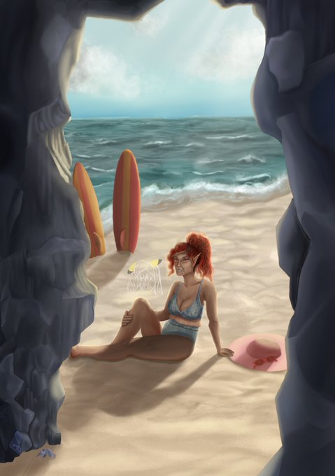 It's Moodboard Monday! Here's my finished piece from the last prompt 'Day at the Beach' ☀️