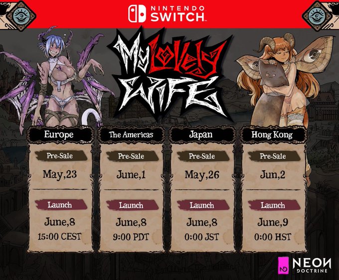 Kind reminder of My Lovely Wife's release times for tomorrow on #NintendoSwitch!