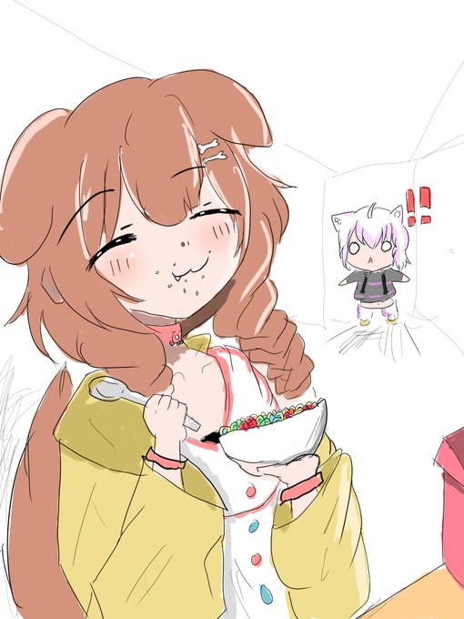 korone comiendo cereal con cuchara :0 #できたてころね