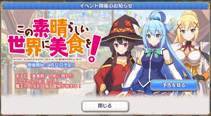 拾った画像www 7月32日ってw コラボするとええな~ #このファン #このすば #プリコネR #プリコネ