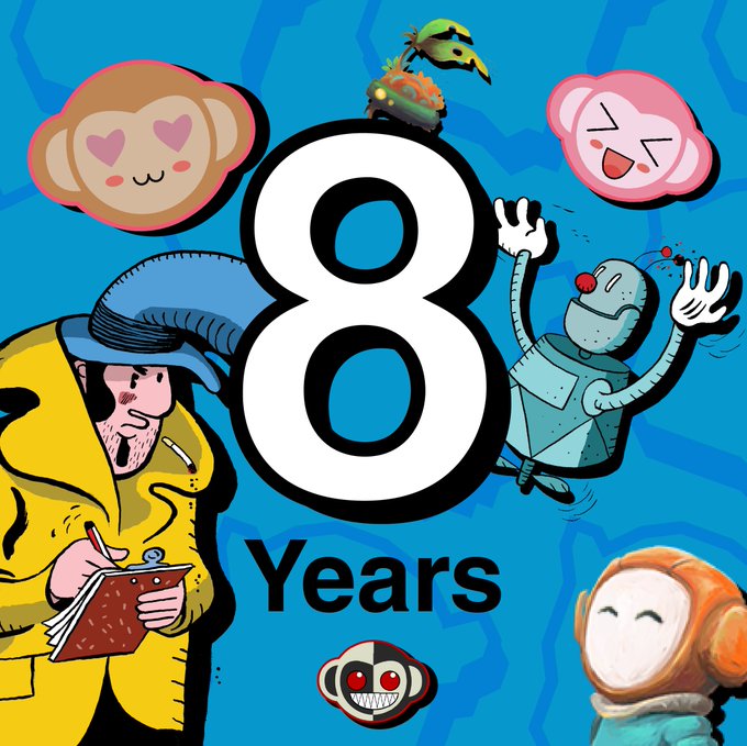 It's our 8th anniversary! We want to celebrate our achievements, characters and the players that make our projects extra special. It's an amazing feeling, to know our games are dear to people around the world. To the past, present and future!🥂