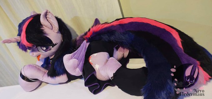 Gothic Twilight Sparkle life size finally done 💖 I adore this girl, she is 1.20 mts long from hoof to hoof + tail (extra from her body) 35 cm total size 1.55 mtrs full Shannon fabrics minky and faux fur💖