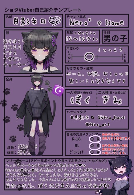 ぼくは、ペット系Vtuberの月影ネロです💜✨魔女の主に人間にしてもらった黒猫の男の子です🐈✨