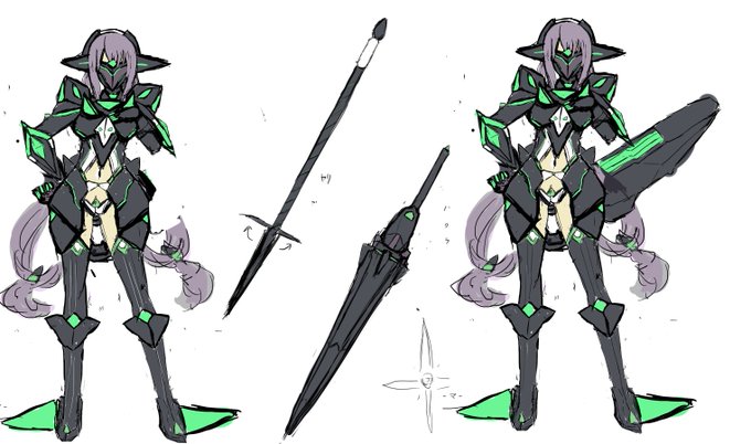 @Nese_000 とりあえずアーマー時(再考)とかも含めた設定画っぽいかんじのなにか