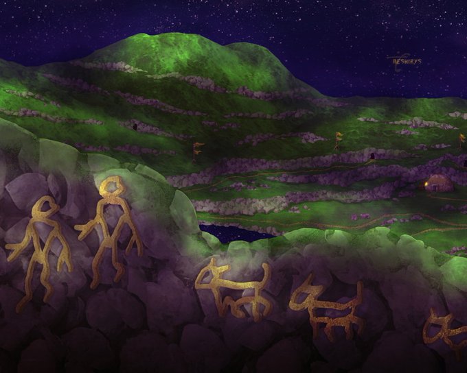Some details of my Garoh - Golden Sun scene and a version without the rock paintings: