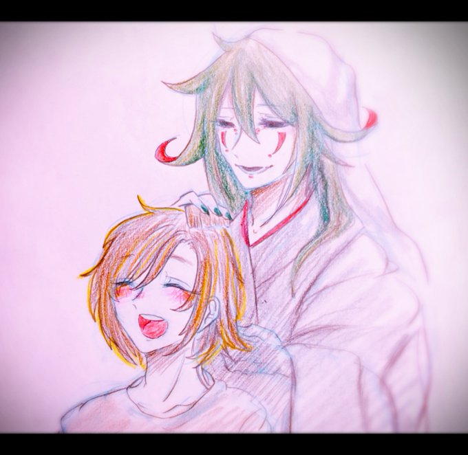 「ねえ、 俺が死んだら絶対ついてきてね」 『わたくしは何処へでもついてゆきますよ。』 「地獄でも?」 『ええ、必ず。 もう独りにはさせません。』 #創作 #落書き #色鉛筆