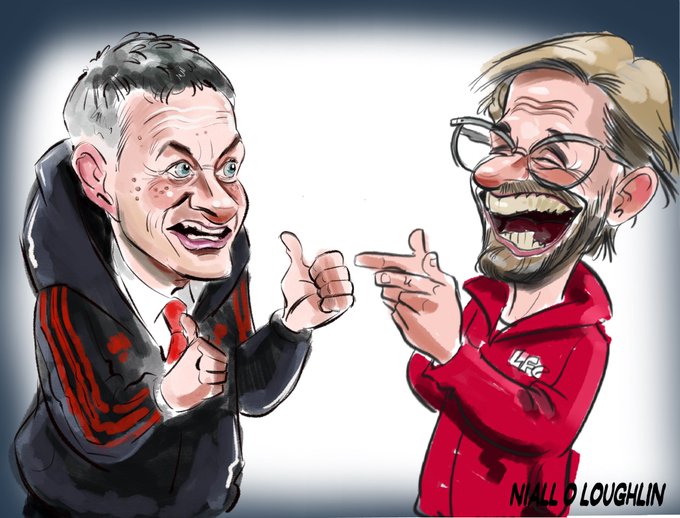 Absolutely shite game as I predicted, I think both teams cancelled each other out and we’re happy with a point #liverpoolfc #liverpoolart #manutdart #solskjaer #olegunnarsolskjaer #klopp #caricature #munliv #mufc