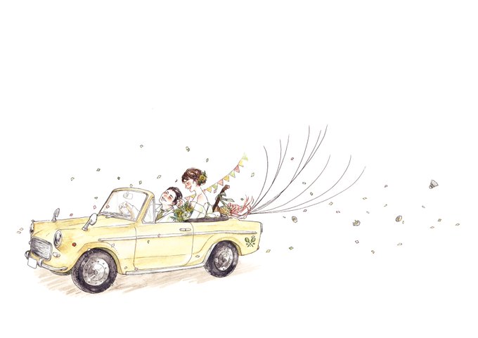 昨年末に、はとこの結婚式の結婚証明の似顔絵を描かせていただきました🚗🏸 ご結婚おめでとうおめでとう〜お幸せに🌼