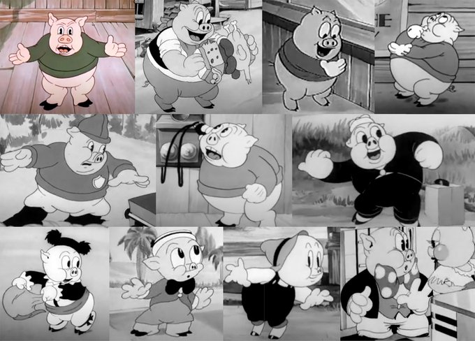 This is just the first 2 OR 3 YEARS of Porky cartoons. It is hilarious how much they did not give an F about design continuity. If the internet existed in 1937 you know dorks would be complaining endlessly about this