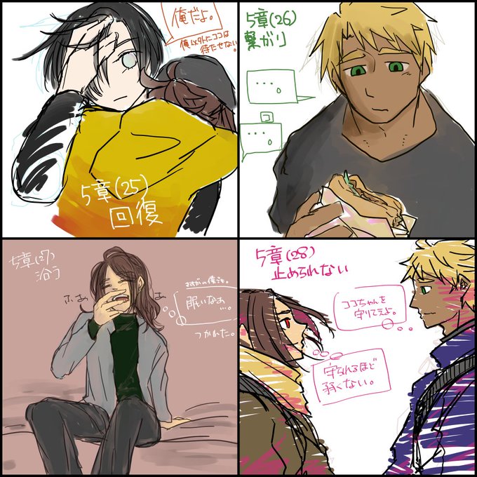 5章が終わったので(17)~(29)各話につけた落書きのまとめ放流。気分のむらがすごいのは毎度のことです。 #ココノアの翼