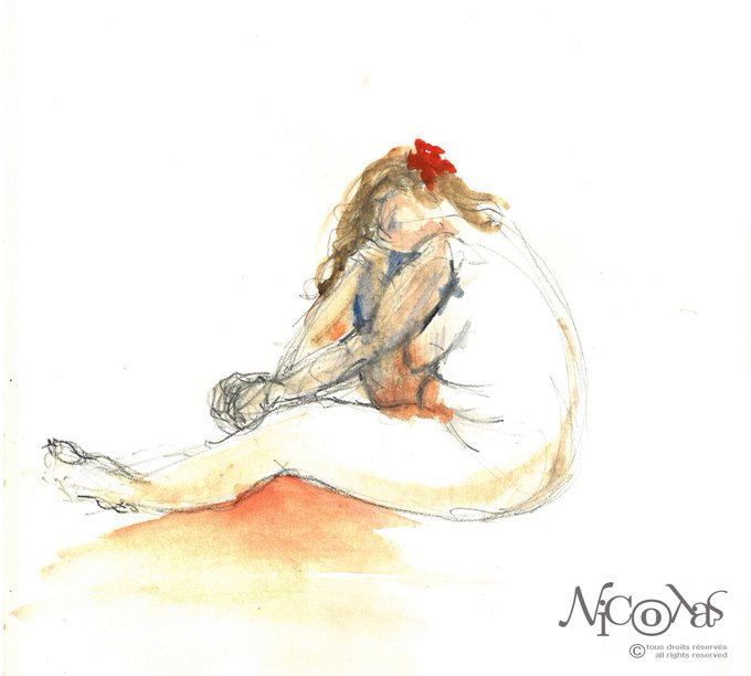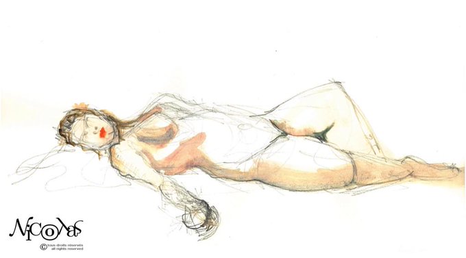 #daily #sketch : #woman #lifedrawing 7 minutes #pencils and #watercolor, #atelier #beauxarts ville de Paris