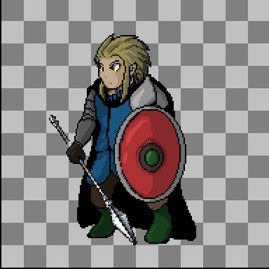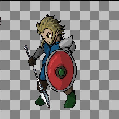 槍の握り方がおかしいけど 壁ユニットである盾兵の立ち絵ができた。 これからアニメーションさせるという 地獄のドット作業がはじまる。 #SRPGStudio