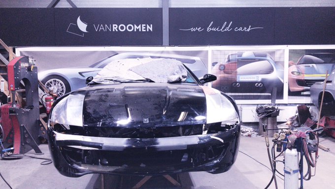 The front end is now changed to the horizontal orientation of the headlight unit. Both fenders, the bonnet and the front bumper are changed. From sketches to the aluminium car through the hands of #coachbuilder Bas!