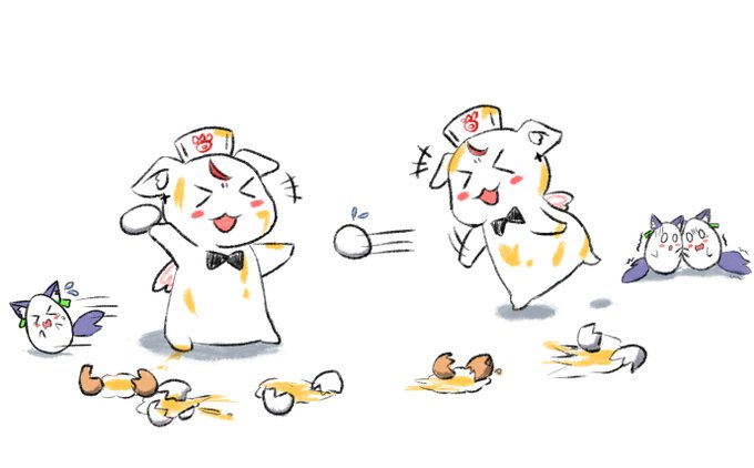 @Kurenagieri @hestia_tete (っ>ω<)╮ =͟͟͞͞🥚 🥚╮(ฅ>∀<*ฅ )