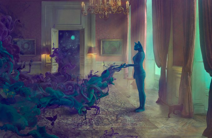 First artwork where The Cat appeared in my work, 2016 🐈⬛🏰🐟