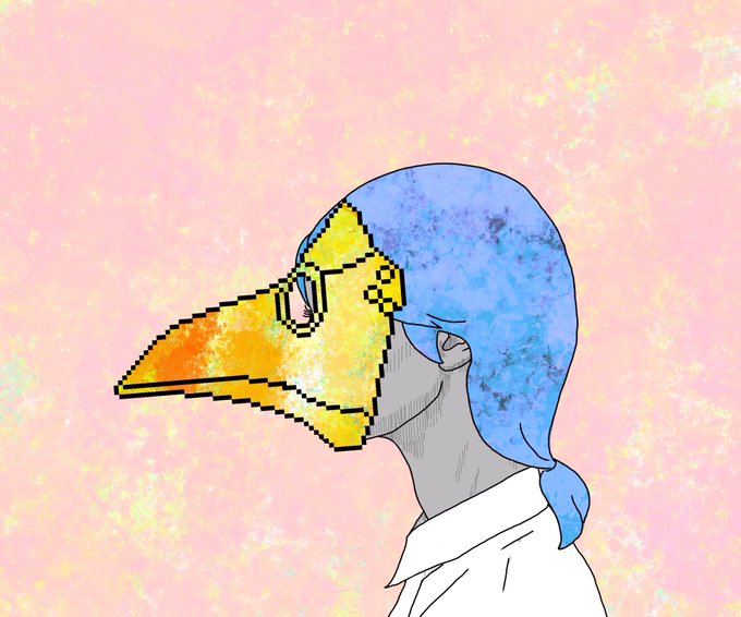 ペストマスク。クチバシの所に香草をいれてたそうですね。背景桜っぽい色味にしてみました。 #art #NFT #nftart #NFTs #NFTアート #イラスト #illustration #opensea #drawing #アート