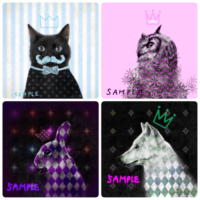 @noujoujin 宣伝失礼致します🙇♂️ ピクセル×ドローイング!違うモノ同士の対比と共存、尊重がテーマ 王冠と動物をモチーフに制作🌟
