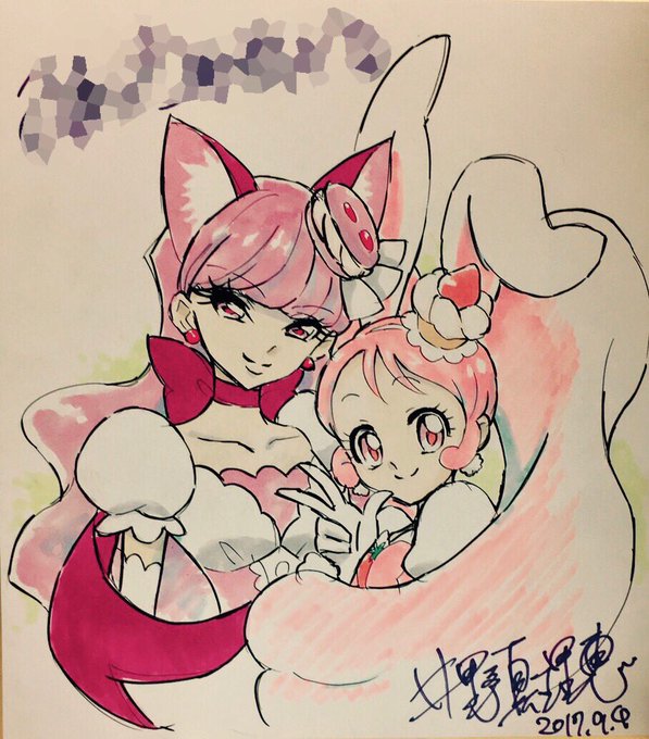 キャラデザイナーの井野さん(@inomarie_ )が描いた色紙を私がアップする不思議(笑)。友人に描いたものらしいです!うつくしかわいい〜!
