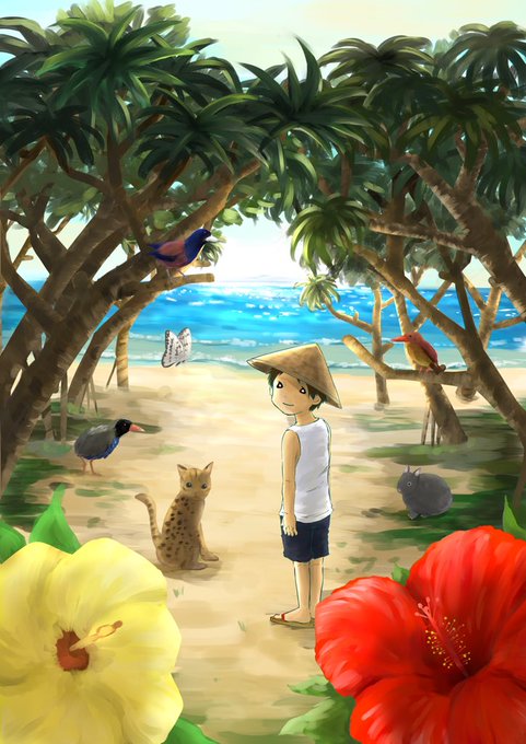 夏の少年の絵