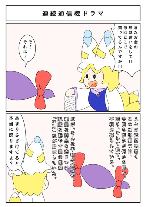 🦊「幻想入りしていないネタを使うのもやめてください‼️」 👁️「それは作者に言って頂戴‼️」 #八雲藍 #八雲紫