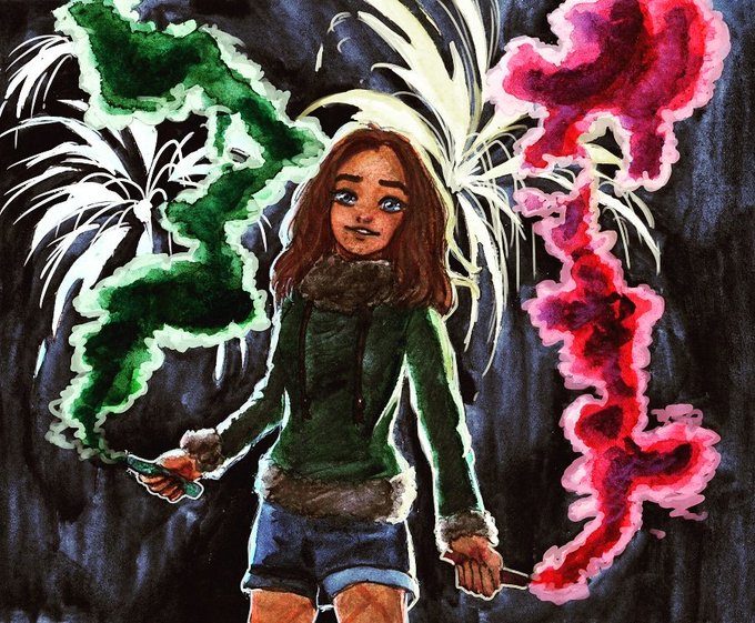 Dramatic fireworks 2 out of 3. Also, first time I drew #originalcharacter Aurora despite her being on my mind a long time coming. =v=)b