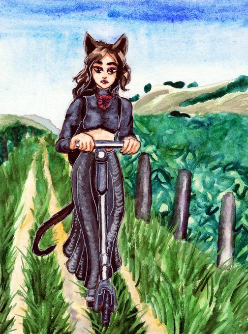 Sometimes goth catgirls take electric scooter roadtrips~ #originalcharacter Renee~
