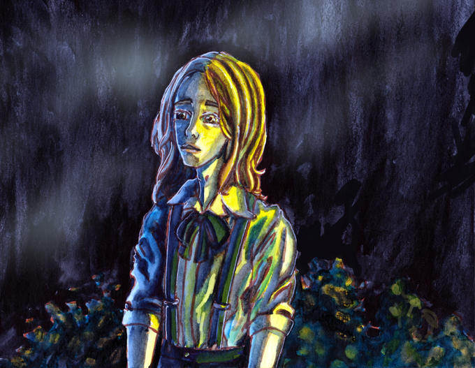 Posted a photo of this earlier, finally scanned and painted over a bit~ More Renee, dramatic fireworks picture 1 out of 3, the other protag pictures are still WIPs~