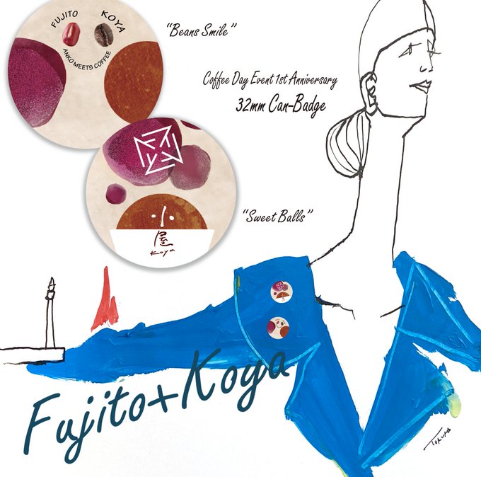 2022,6/19sun 藤戸饅頭+小屋珈琲「珈琲の日」イベント一周年記念グッズ。缶バッジ三種。の告知のためのやつ。