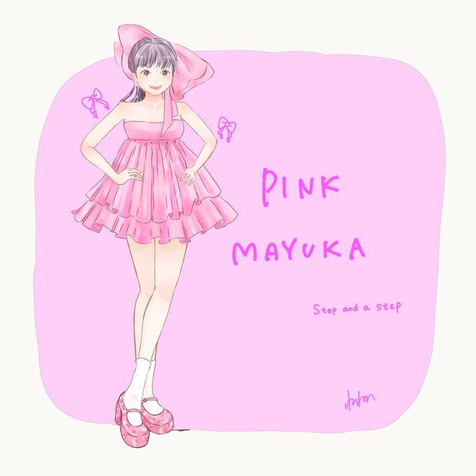 ピンク代表に選んだステステでかリボンは1番好きな衣装かもしれない🎀初めて描いたファンアートもこのマユカちゃんでした🥺