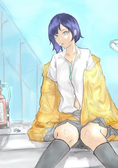 毎日イラスト68 屋上 背景など難しいですねm(_ _)m #イラスト #イラスト好きな人と繋がりたい #イラスト練習