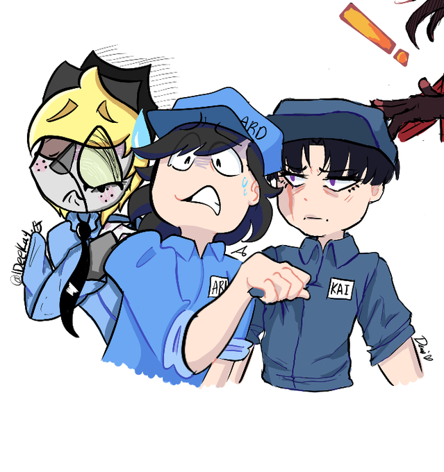 Me, @IDeeKayAj1, and @ariskyeart had a great time on https://t.co/0Ksxfd3plu drawing little sketches! We drew a little FNAF security guard trio of our personas!
