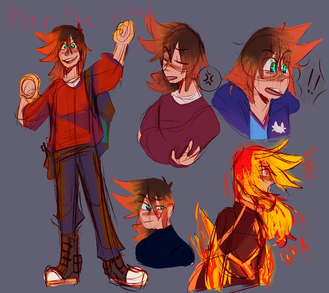 Pipers transformation to the sun warrior! When they do transform their hair is more redder and the ends are fire (they have a bit of fire resistance).