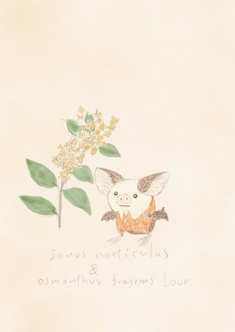 マウンテンピグミーとノウゼンカズラ 描いてて初めて気づいた。ごっつい身体に不釣り合いなピグミーそのままのちっちゃいお耳が可愛すぎる〜! #花とリヴリー