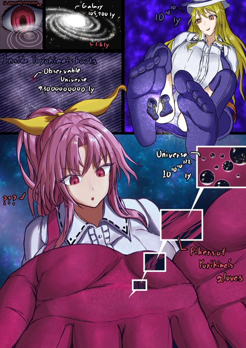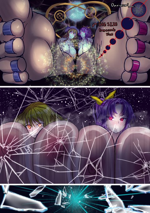 skeb巨大娘納品しました!内容は綿月姉妹の無限巨大化で四枚構成の最大スケールです。