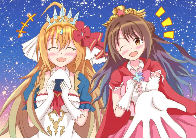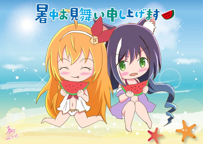 「ぺコリーヌとキャルからの暑中見舞い🍉」 厳しい暑さが続いているので、体調には十分にお気をつけくださいね✨ #プリコネR